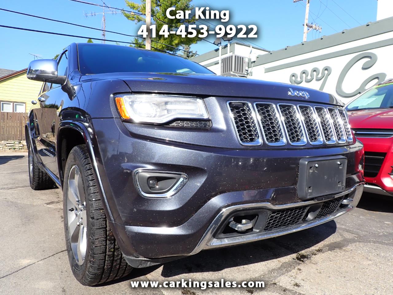 One Owner 2015 Jeep Grand Cherokee Overland 4X4. Heated and cooled leather seats, sunroof, back up camera, parking sensors, push button start, heated steering wheel, power tail gate, dual exhaust, Navigation, Bluetooth and power everything.Stop into Car King today! We are celebrating over 45 years as a family business serving the community. If you would like to see our entire inventory or if you need financing for Great or Poor Credit go to www.carkingsales.com. Our finance manager would be happy to assist you. We also have extended warranties available. Our sales staff would be happy to give you information on any of our vehicles. Call 414-453-9922 and ask for Brian or Austin for assistance. New inventory arrives daily. We are easy to find in West Allis at 10124 W. Greenfield Avenue. We look forward to meeting you!